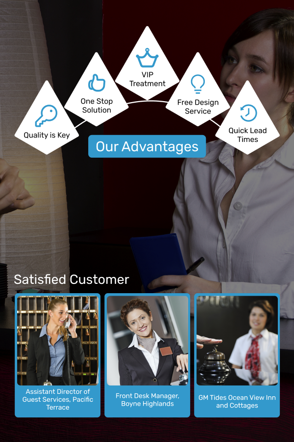 Front Desk Supply clients can breathe a sigh of relief with our easy and transparent process for ordering branded hotel supplies. Below we’ve outlined our 8-Step Process so you know what to expect from the moment you order until your hotel supplies arrive.